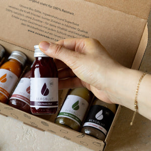Sag’s mit Shots! Ob als Muntermacher zum Geburtstag, kleiner Liebesgruß oder „Werde schnell wieder fit“-Geschenk: Unsere Bio Bergshot Box mit exklusiver Themen-Banderole kombiniert 100% Natur mit echter Wertschätzung. 7 Shots, 7 Sorten, 0 Kompromisse.